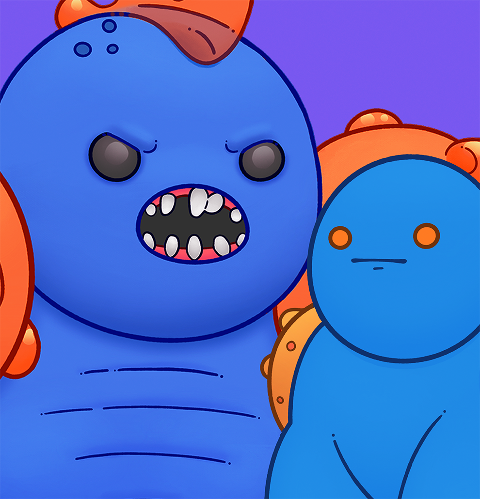 Trio de monstres réalisé avec Procreate